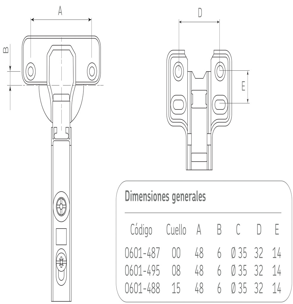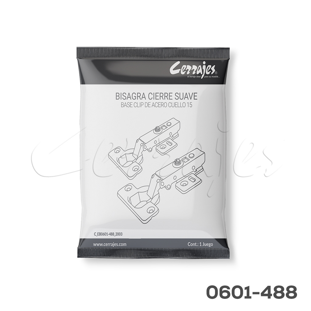 Bisagra enrasada Cerrajes “L'” Ø=35mm 110° cuello 15 48x6mm niquelada cierre suave con base clip