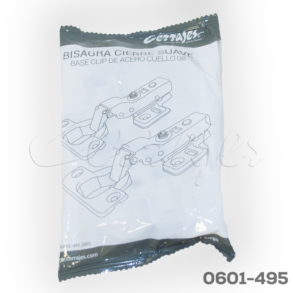 Bisagra semi-sobrepuesta Cerrajes “L'” Ø35mm 110° cuello 08 48x6mm niquelada cierre suave base clip