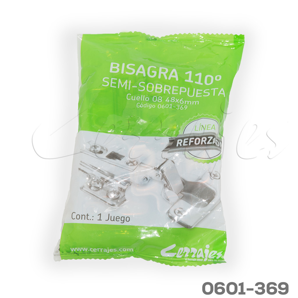 Bisagra semisobrepuesta Cerrajes “Reforzada”Ø=35mm cuello 08 48x6mm 110° base 4 perf.H=4mm niquelada