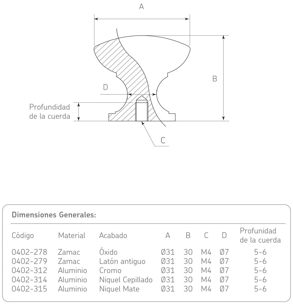 Botón Zamak Ø=31 mm 4005 Z07 Cromado Tornillo M4x25mm