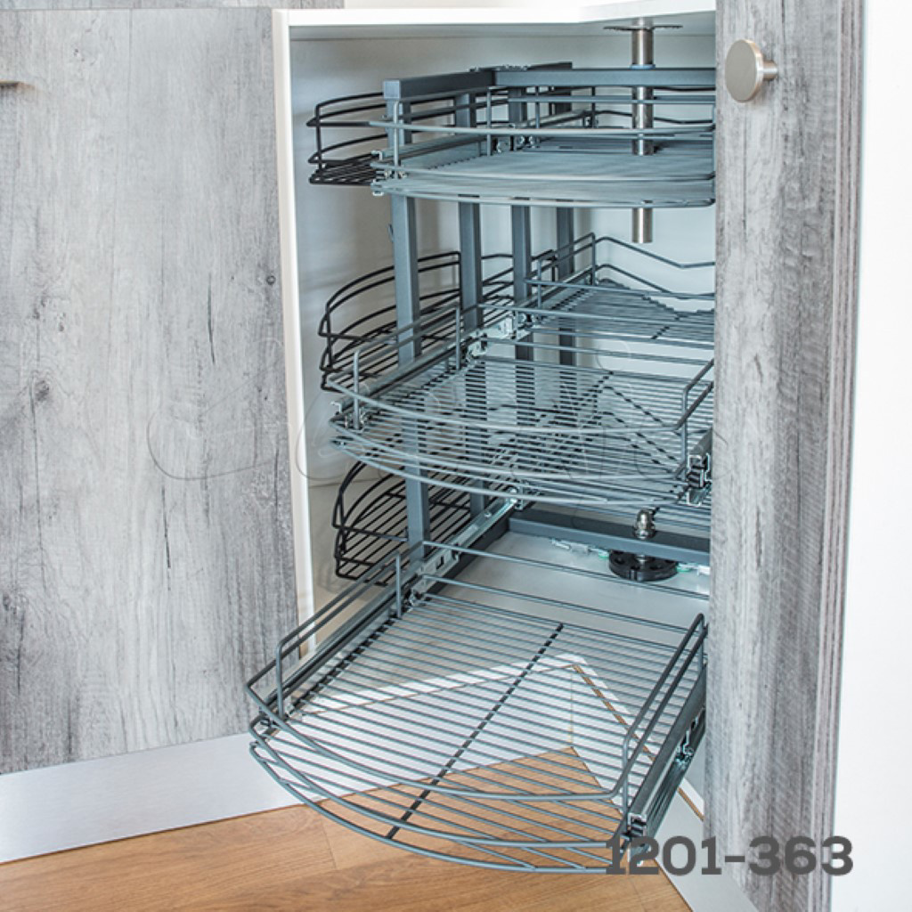 Giratorio para esquina 3/4 con canastillas extraíbles “Roma” alambre grafito W=900mm