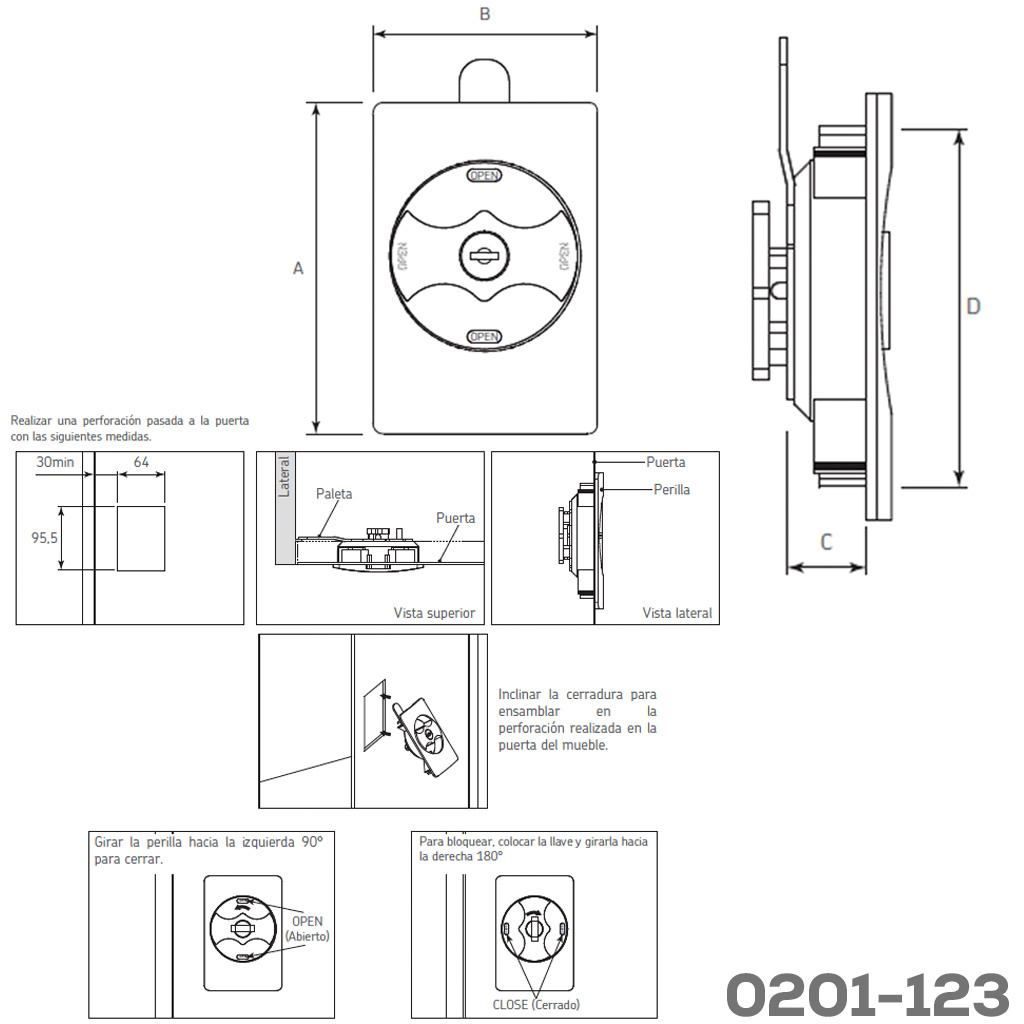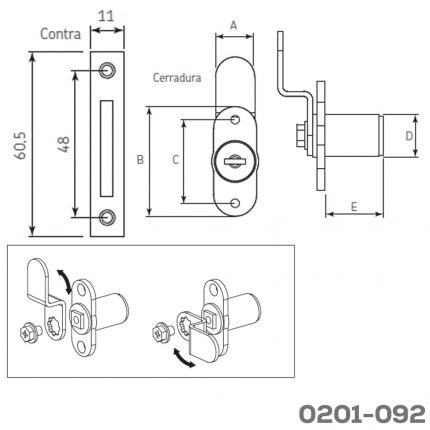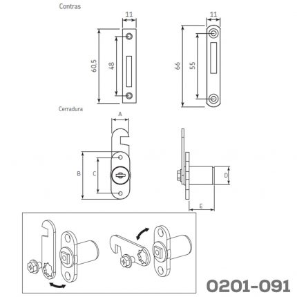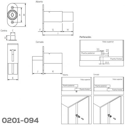 Cerradura de perilla puerta de metal 0,6-1,0mm de paleta 106x72mm (93,5×65,5mm) Cilindro CL-C1