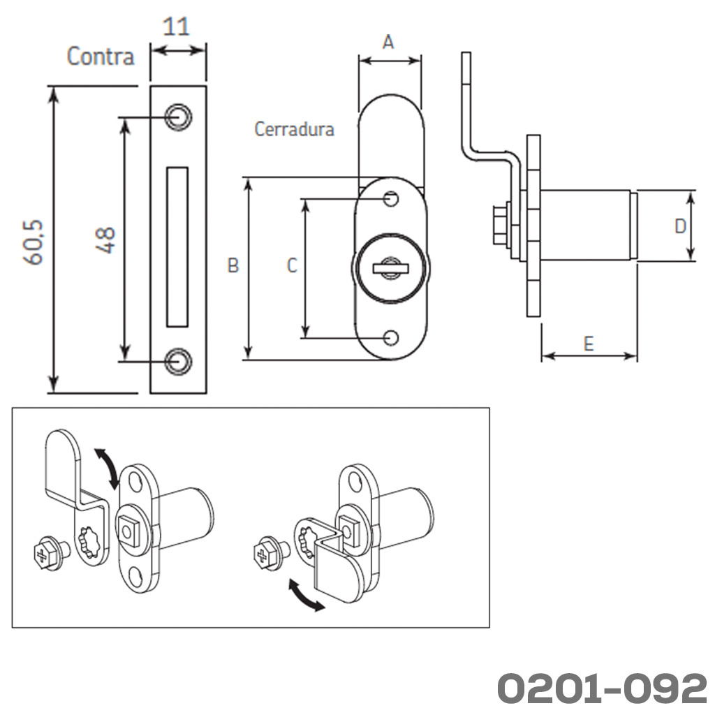 Cerradura gabinete (madera) paleta con gancho CL zamak Ø=16,5mm cañon 22mm con cilindro C1 Inicia sesión para ver precios