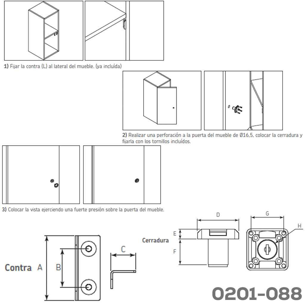 Cerradura gabinete madera rectangular CL Plástico Ø=16,5mm H=34mm L=22mm Niquelado/Gris cilindro C1