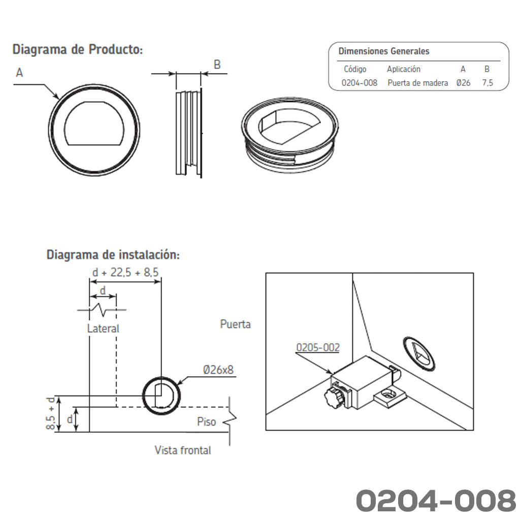 Contra redonda para freno a presión Salice “Push-mecánico” plástico gris Ø=26mm H=8mm