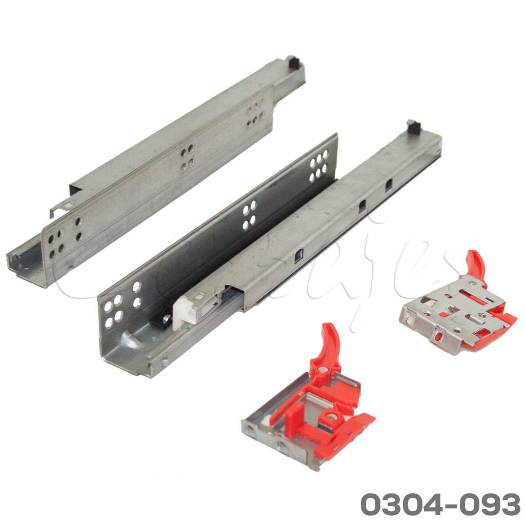 Corredera bajo montaje fijación con soporte Cerrajes “Okulta” L=350mm Zincada Extensión total Cierre suave