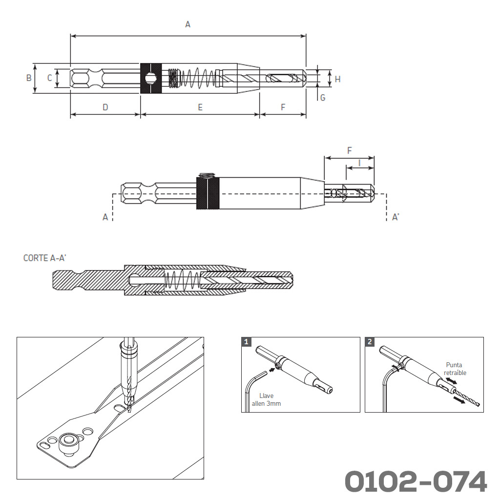 Guía de centros con broca piloto 2,4 mm