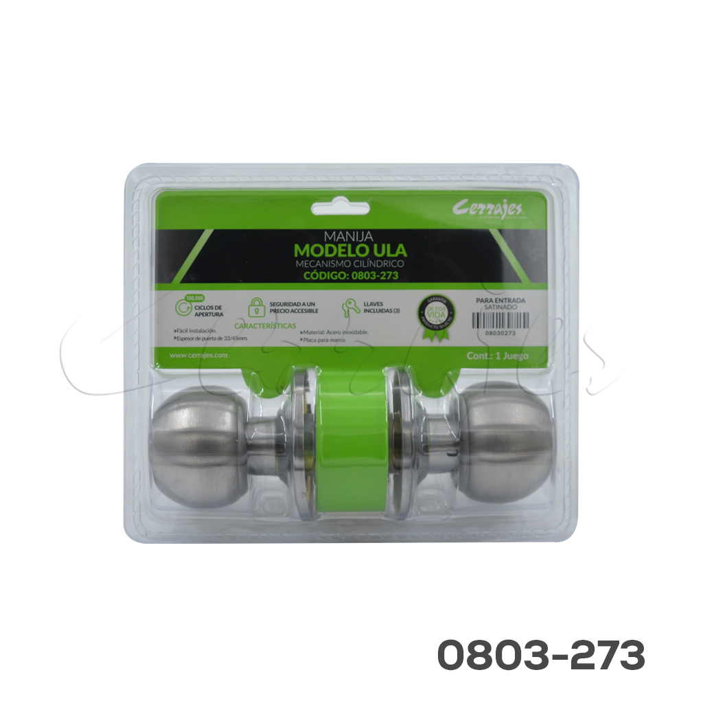 Manija de bola Modelo “Ula” Recámara/Entrada llave estándar/botón Acero Inoxidable