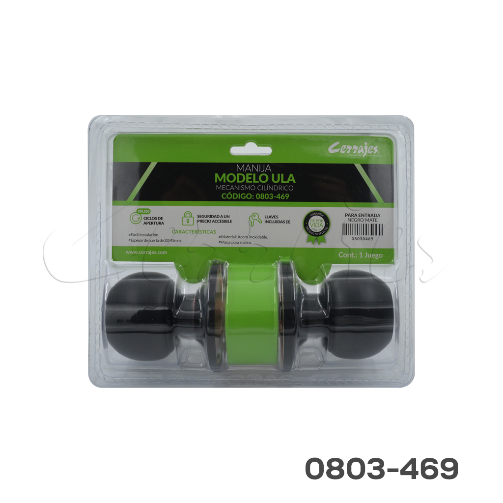 Manija de bola Modelo “Ula” Recámara/Entrada llave estándar/botón Negro mate
