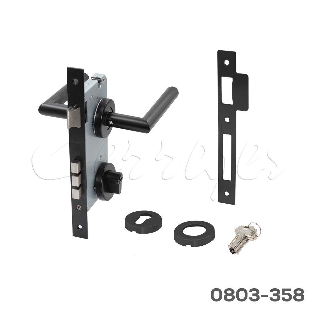 Manija de recamara, Mod."Atria" mecanismo 85x55mm cilindro llave/mariposa, llave estándar,Negro Mate