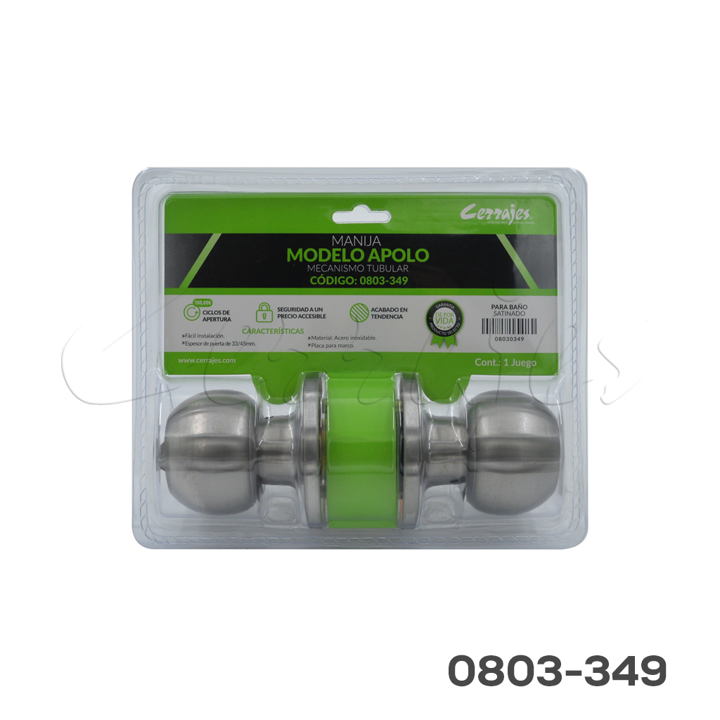 Manija tubular baño Mod.”Apolo” mariposa/ranura, Pestillo 60-70mm, Acero inoxidable Satinado