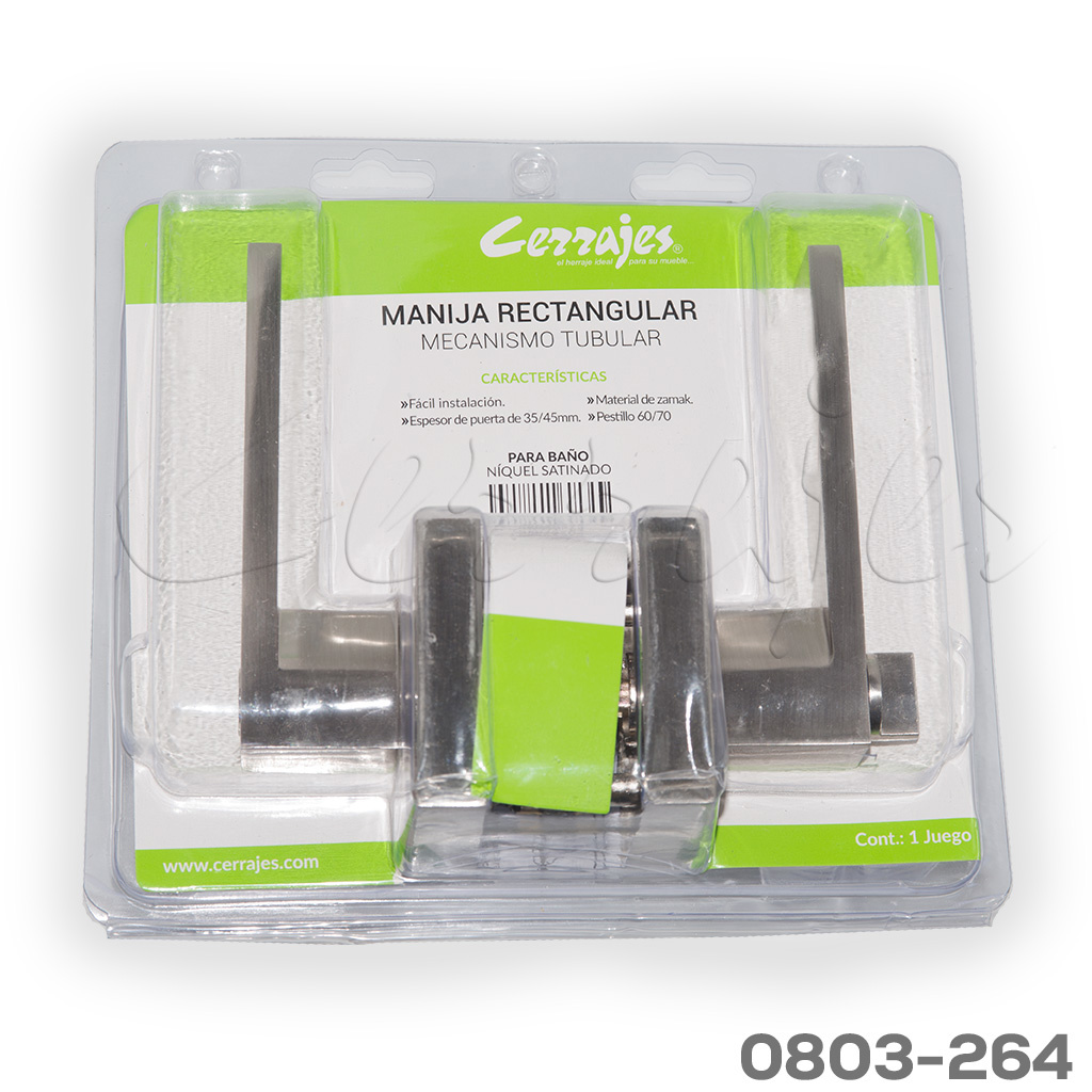 Manija tubular de baño Modelo “Almara” mariposa/ranura, pestillo 60-70mm, Níquel Satinado