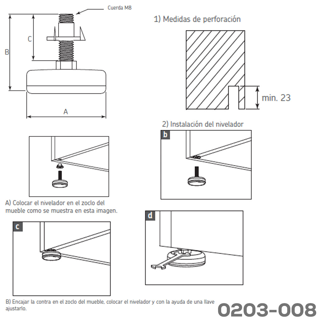 Nivelador Cerrajes acero y plástico POM Ø=43mm 250Kgembolsado (4 piezas)