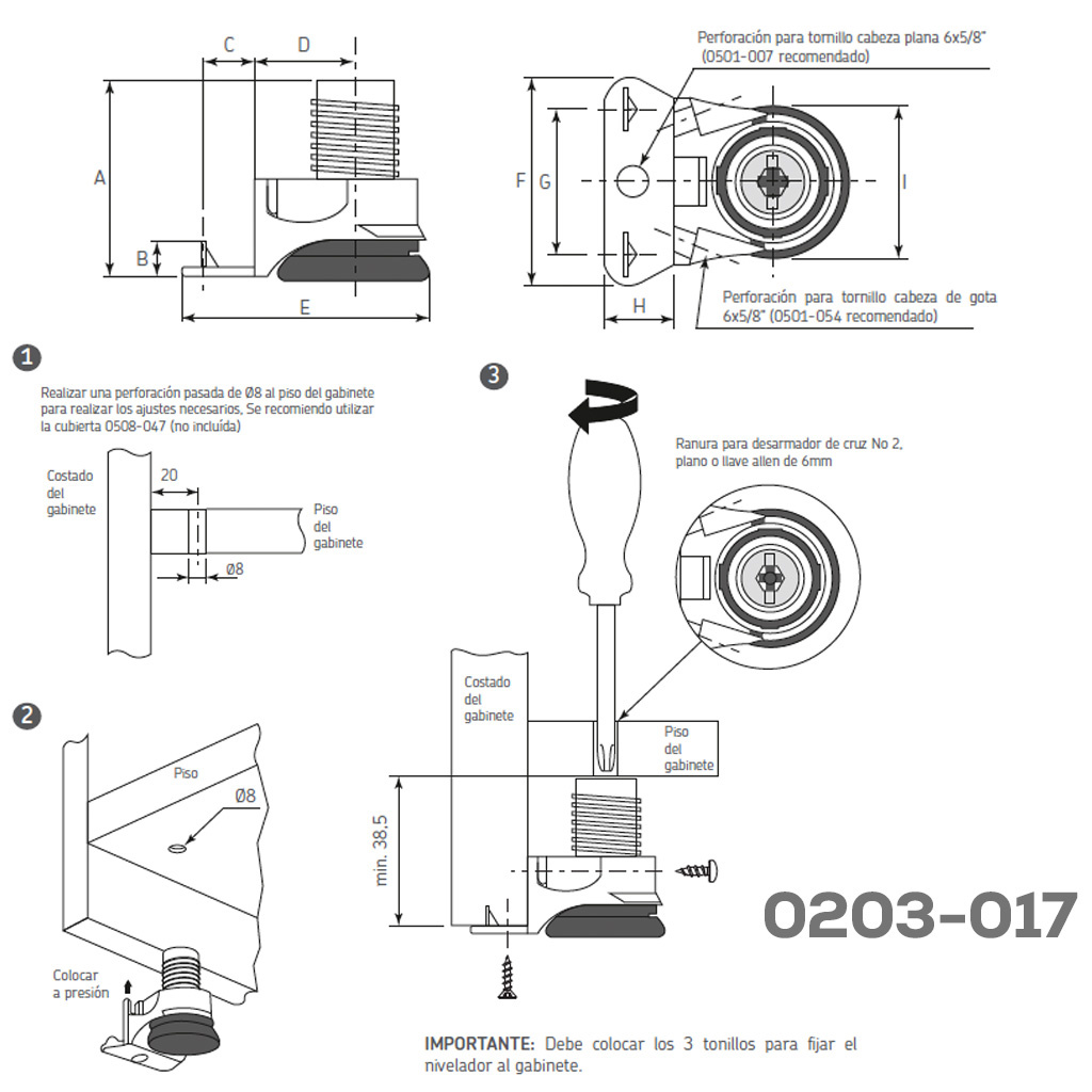 Nivelador zamac INTEGRATO para 175 kg ajust. 25 mm