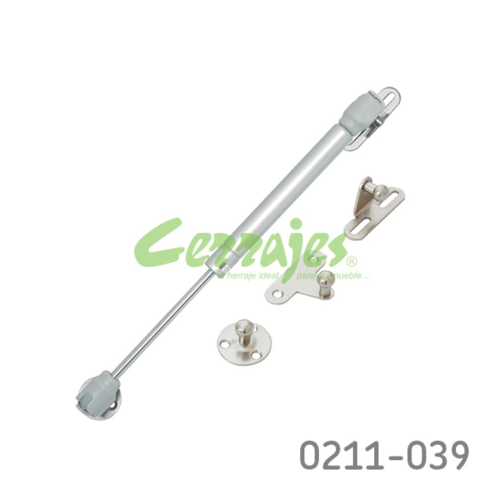 Pistón de gas para gabinete con enganches Cerrajes L=247mm Plata 60N