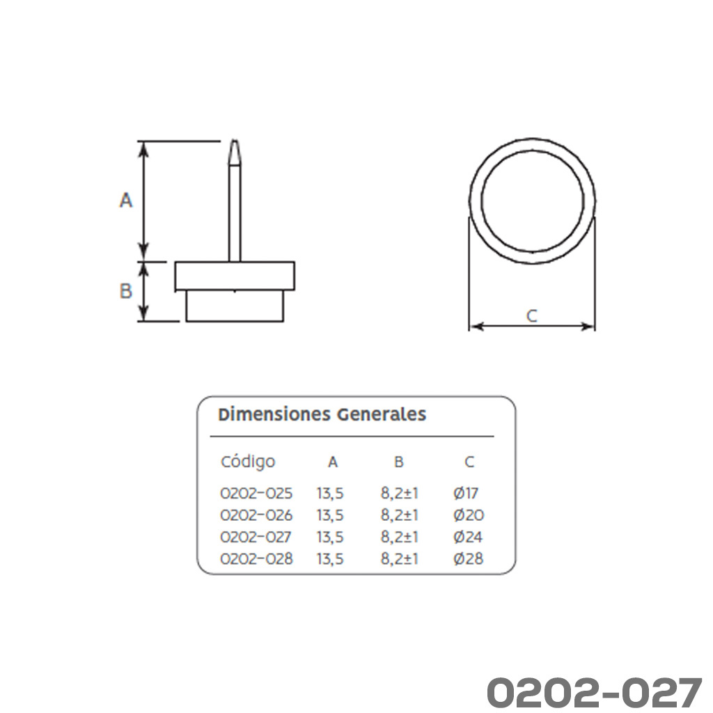 Resbalón con clavo Cerrajes plástico + felpa Ø=28mm H=8,2mm blanco Inicia sesión para ver precios