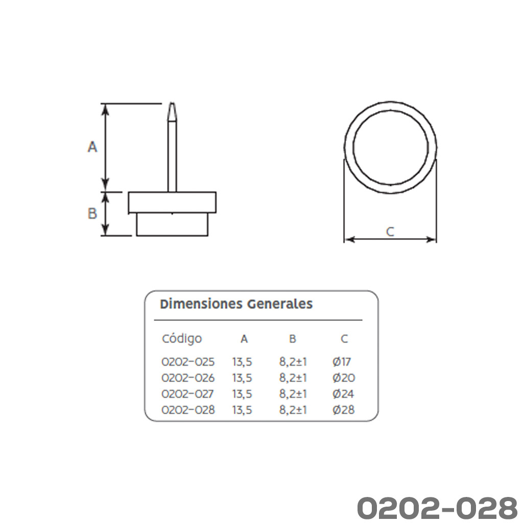 Resbalón con clavo Cerrajes plástico + felpa Ø=24mm H=8,2mm blanco Inicia sesión para ver precios