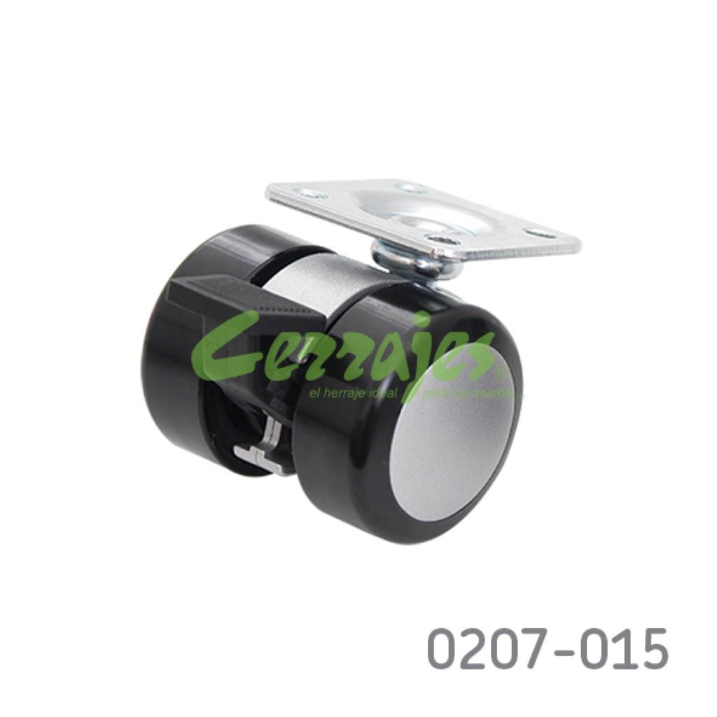 Rodaja para gabinete con freno placa 38x38mm Cerrajes poliuretano Ø=37mm gris/negro 50Kg