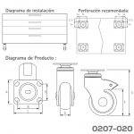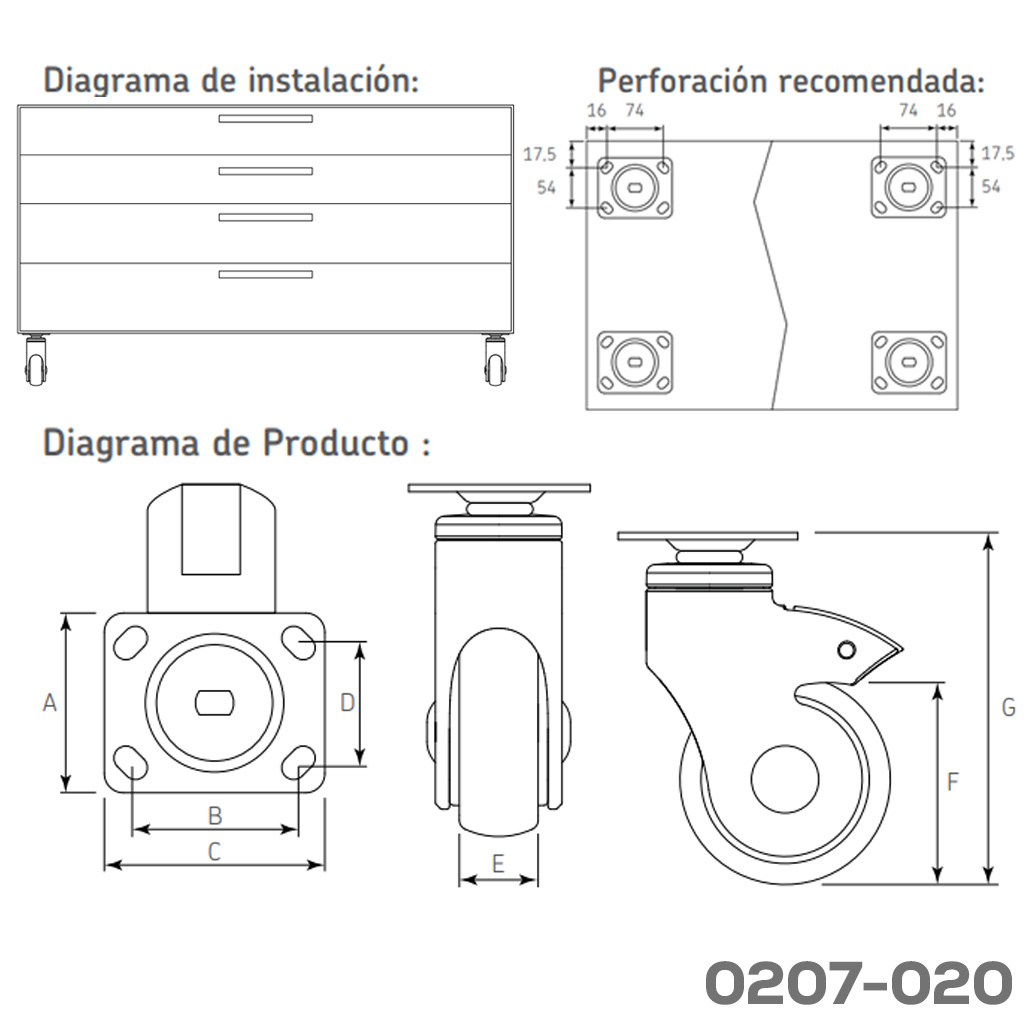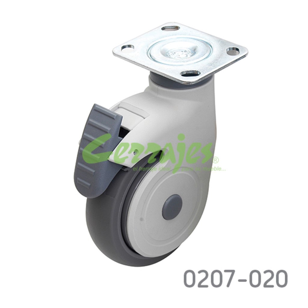 Rodaja para gabinete con freno placa 92x75mm Cerrajes PP/termoplástico Ø=125mm blanco/gris 80Kg