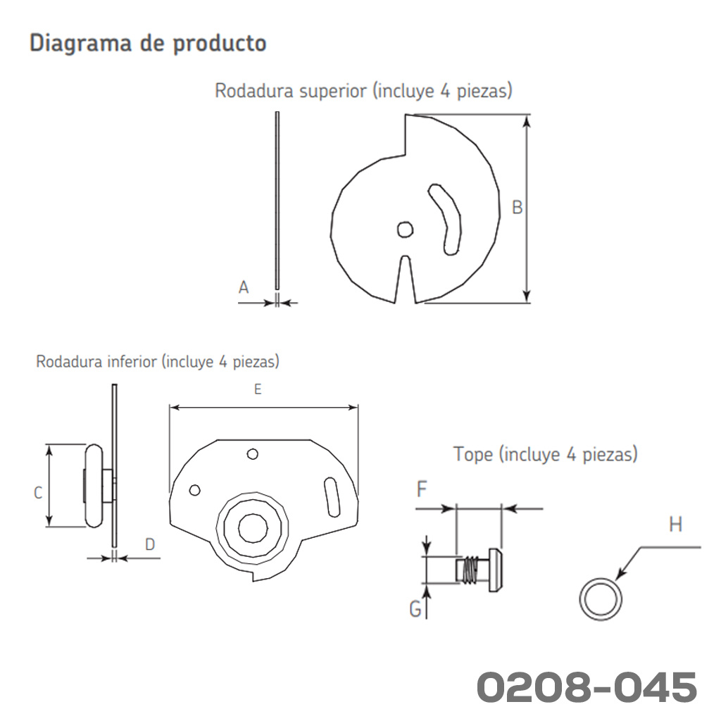 Sistema corredizo para mueble de 2 puertas sin riel Cerrajes C-25 acero 15Kg